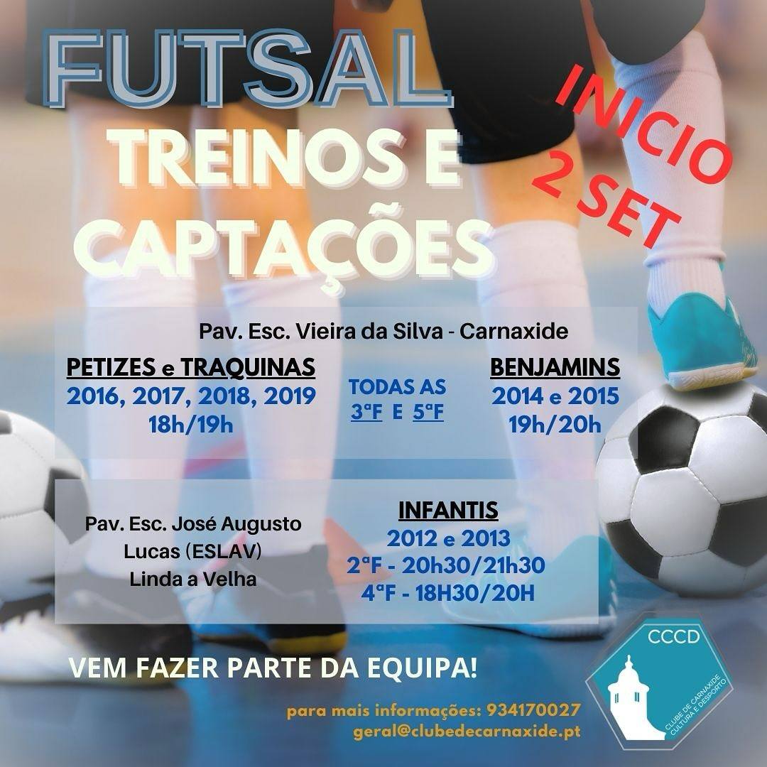 O Clube de Carnaxide Cultura e Desporto prepara a nova época na modadalidade de futsal. O início de treinos e captações está agendado para dia 2 de setembro.