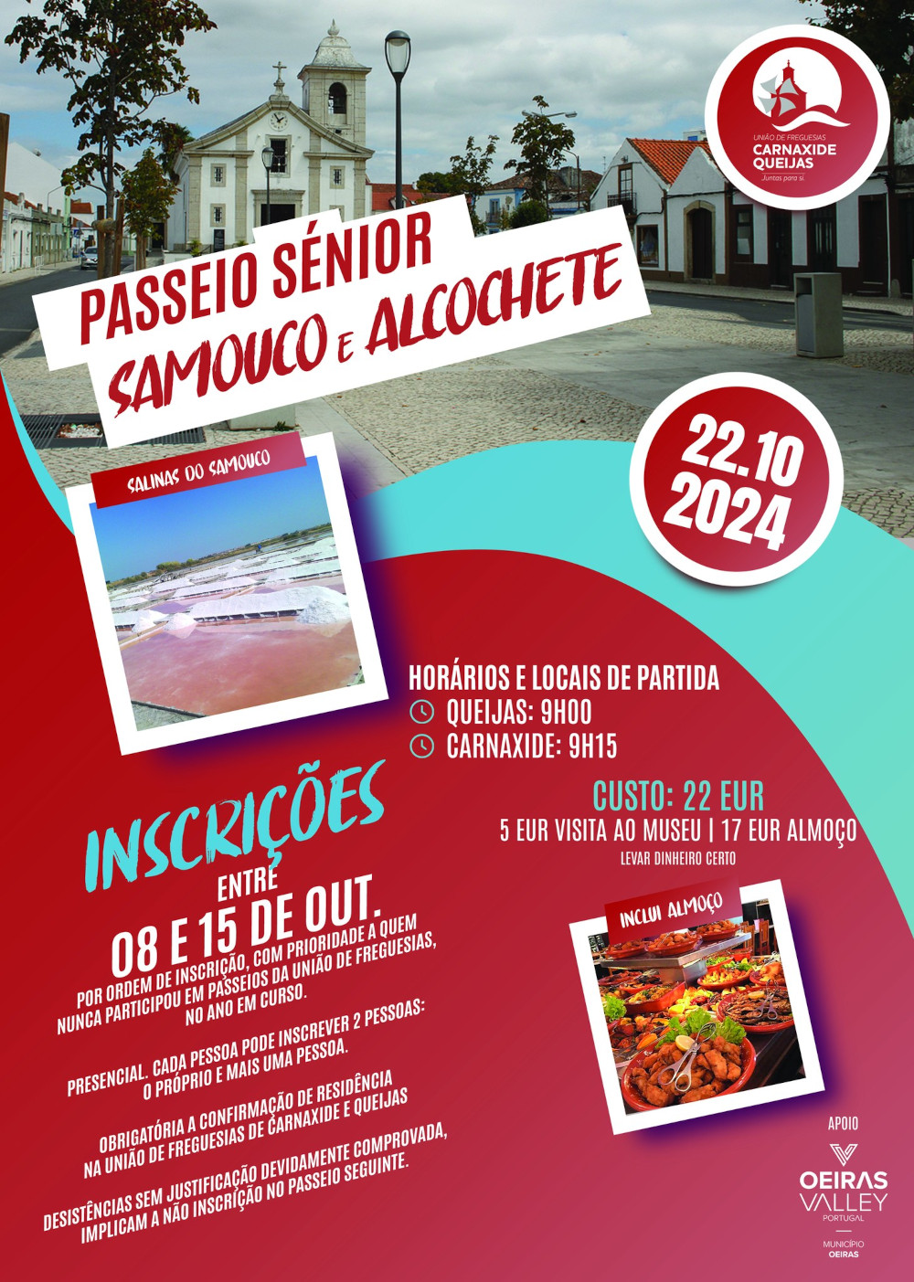 Estão abertas as inscrições para o próximo "Passeio Sénior" promovido pela União de Freguesias de Carnaxide e Queijas (UFCQ), que terá como destino as salinas do Samouco e Alcochete.