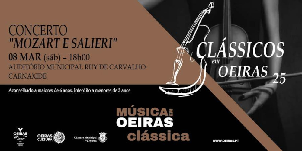 "Mozart e Salieri" é o nome do próximo recital, a decorrer no âmbito dos Clássicos em Oeiras, no Auditório Municipal Ruy de Carvalho, em Carnaxide, no sábado, dia 8 de março, pelas 18h00.