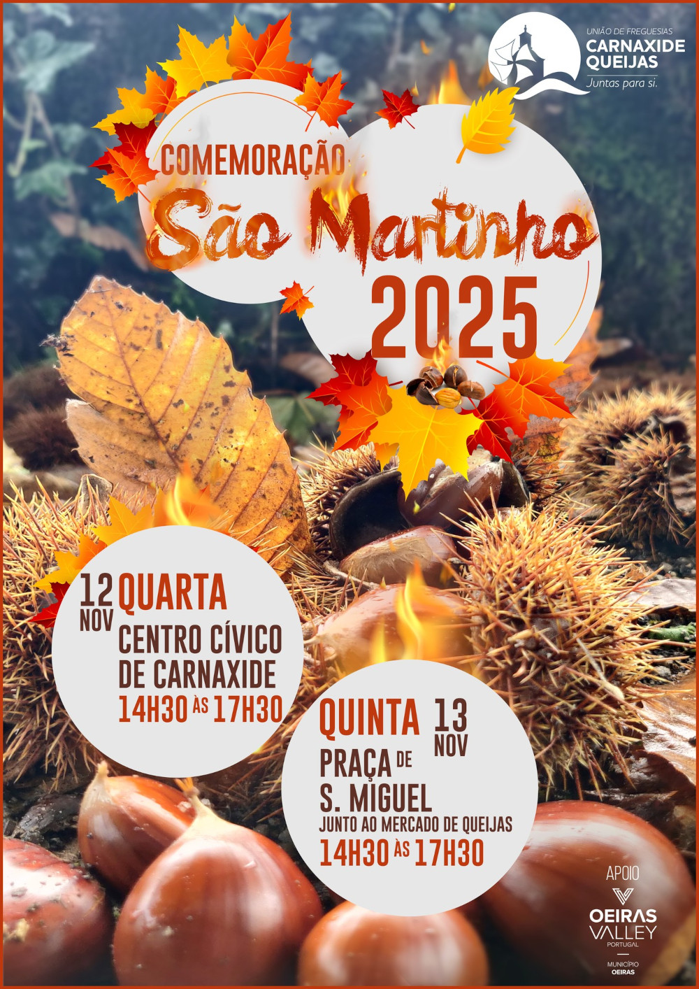 Venha celebrar connosco o São Martinho! A União de Freguesias de Carnaxide e Queijas vai oferecer castanhas assadas à população