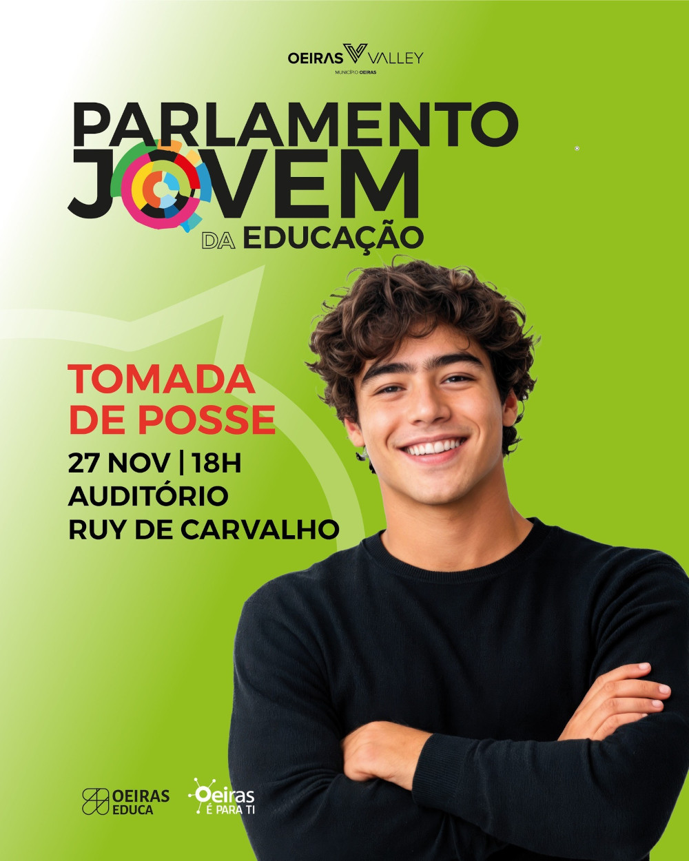 O Auditório Ruy de Carvalho em Carnaxide será o palco da Tomada de Posse dos deputados eleitos para o Parlamento Jovem da Educação (PJE), no dia 27 de novembro, pelas 18h, num momento que celebra o início oficial de uma nova etapa de participação juvenil em Oeiras.