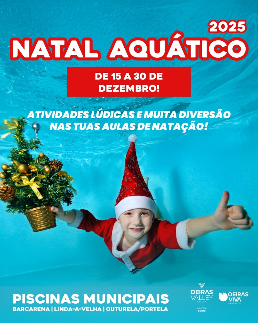 De 15 a 30 de dezembro, o espírito natalício vai invadir as Piscinas Municipais de Oeiras com atividades lúdicas.